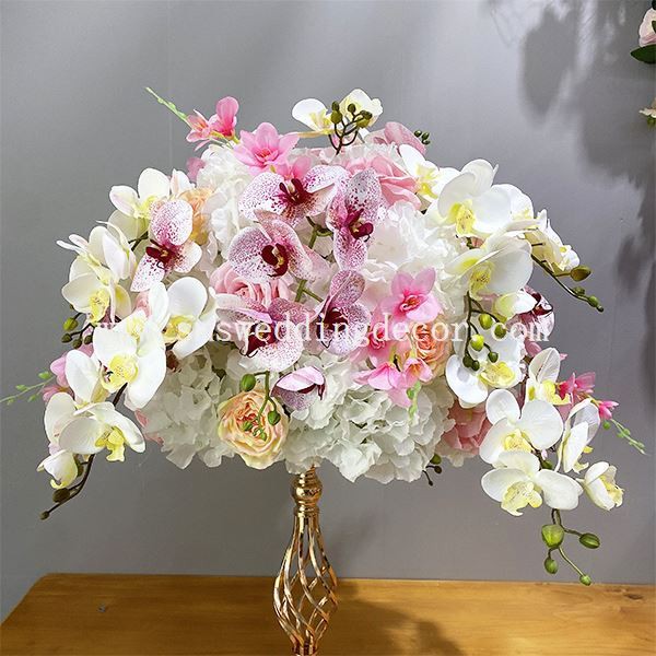 ir hortenzijas un orhidejas. Hortenzijas ir vislabākie pildvielas ziedi, un tās parasti atrodas pašā puķu bumbas apakšā. Orhidejai ir gari zari, baltie un rozā ziedu zari dabiski nokarājas, kas ir maigi un romantiski.